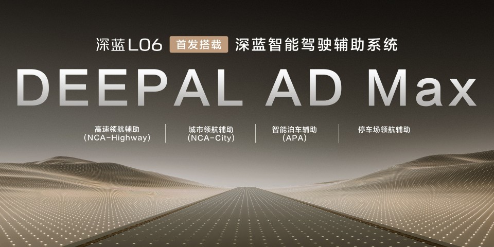 深蓝L06全系标配激光雷达与两颗地平线J6M芯片,首发搭载“深蓝智能驾驶辅助系统 DEEPAL AD Max”,支持高速与城市领航NCA、全场景自动泊车APA等多项功能。