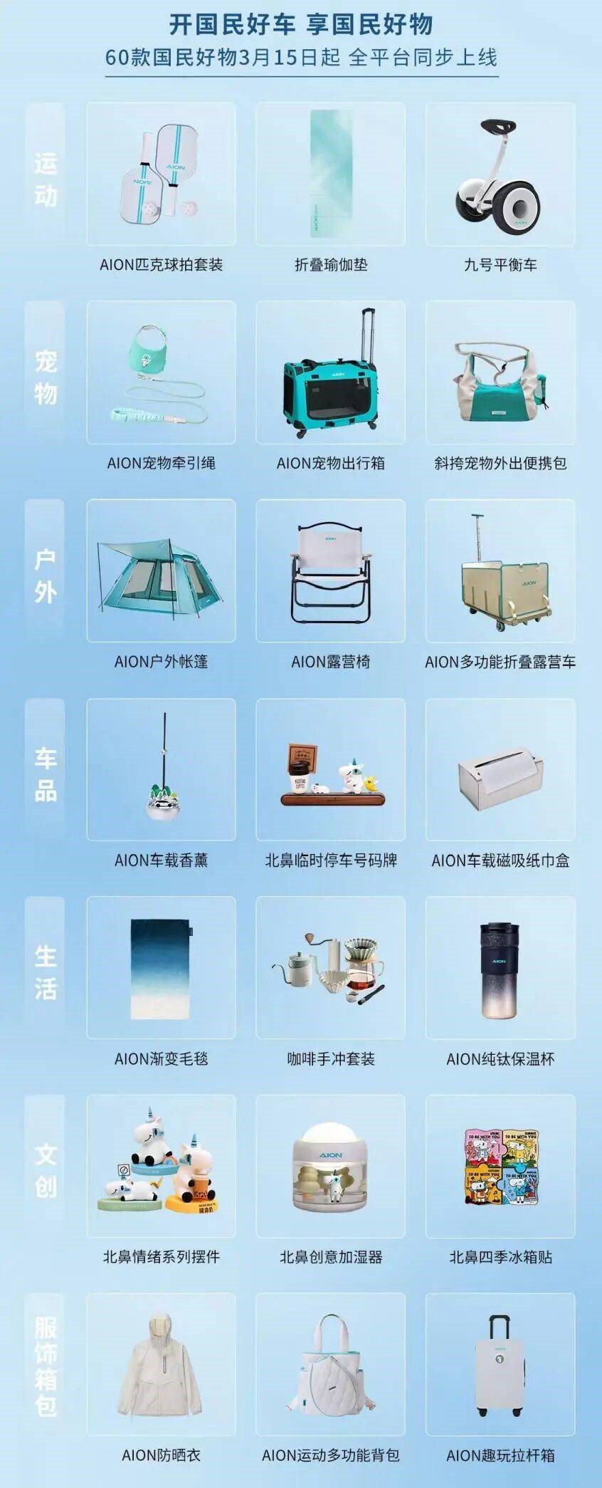 “国民好物”的推出,成为本次发布会的一大亮点。随着汽车逐渐演变为移动生活空间,用户对于车生活的期待也在不断延展。埃安以“好而不贵、安全可靠”为核心理念,将用户日常出行场景中的真实需求进行产品化呈现。首批推出的60余款“国民好物”,覆盖户外露营、萌宠陪伴以及健康疗愈等多个生活领域,呈现出更加立体的车生活场景图景。