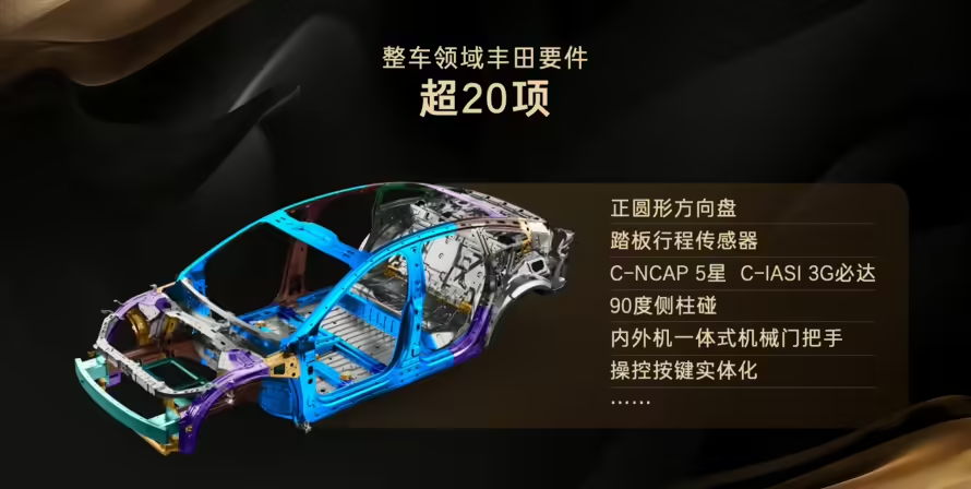 在安全方面,铂智7延续了丰田一贯严谨的工程标准。车辆采用高刚性车身结构,高强度钢占比达到72%,并标配10安全气囊。在电池安全、车辆结构以及主动安全系统方面,新车同样进行了多项强化设计,以确保在不同使用场景中的安全表现。