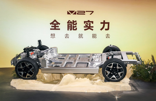 四驱版本车型则配备双电机驱动系统,电驱总功率335kW,峰值扭矩505N·m,官方公布的0—100km/h加速时间进入5秒级。在动力输出与通过能力之间,V27试图实现兼顾家庭舒适与户外探索的平衡。