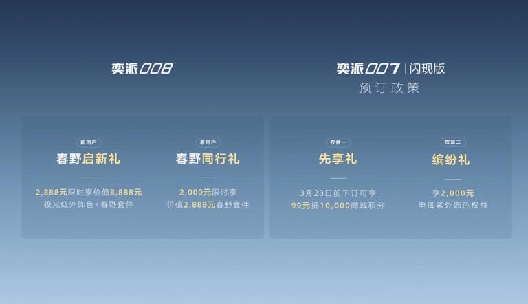 性能方面,新车延续了ETCR赛道技术基因,并由冠军团队进行专业底盘调校;在智能化配置上,车辆配备双AI大模型智能语音助手与SOA智能座舱,兼顾驾驶乐趣与科技体验。按照计划,奕派007闪现版将于3月28日正式上市。在此之前,下订用户可享99元抵10000商城积分的先享礼,以及价值2000元电御紫外饰色权益的缤纷礼。